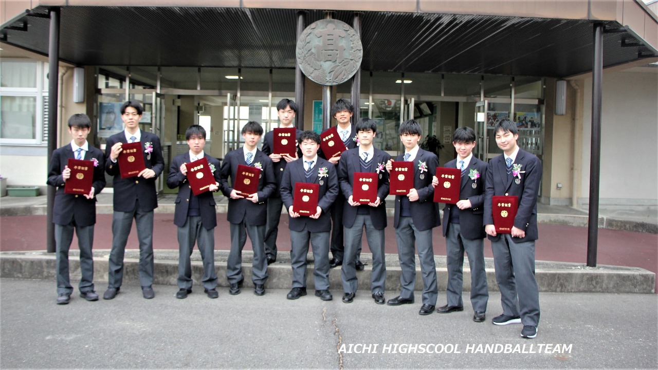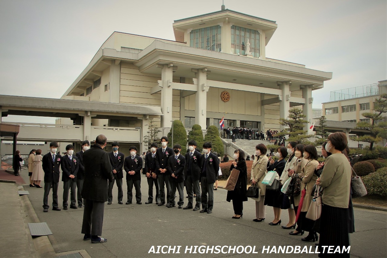 今年度はハンドボール部から11名が卒業しました。高校時代の半分以上がコロナ禍となり、苦しい時や我慢の時期も長かったと思いますが、粘り強くやりぬきました。彼らの卒業への思いもひとしおだったと思います。